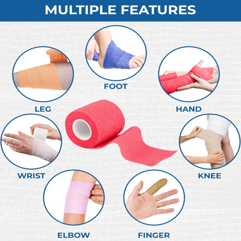يمكن تمزيقه يدويًا لاستخدام الإسعافات الأولية السريعة في المنزل أو في العيادات أو في صالة الألعاب الرياضية أو في الهواء الطلق.